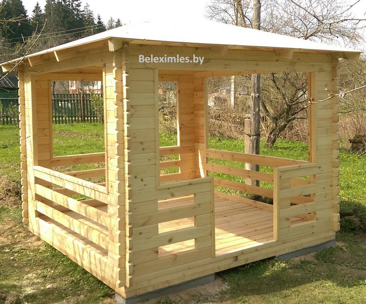 Очень популярны летние садовые постройки из профилированного бруса.